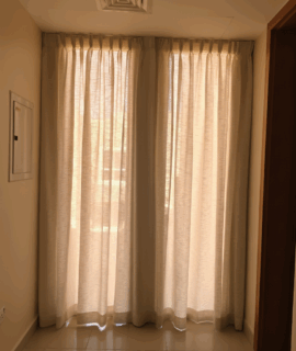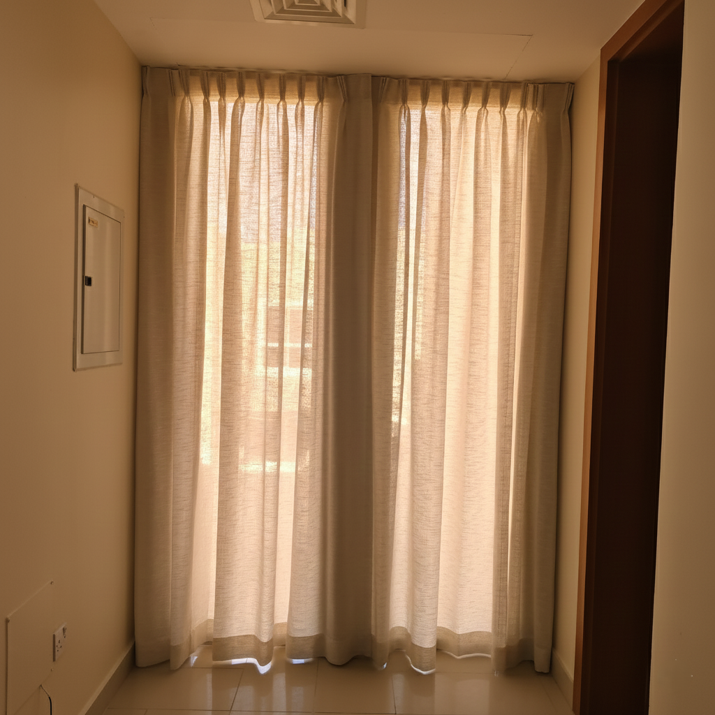 Custom Ceiling Tracks: Features a sleek, top-mounted track system that allows the curtains to flow seamlessly from floor to ceiling.