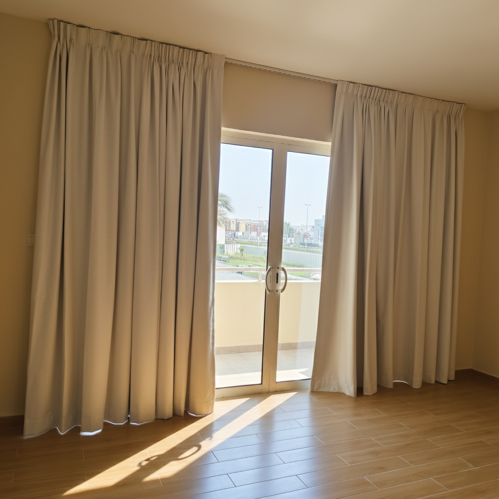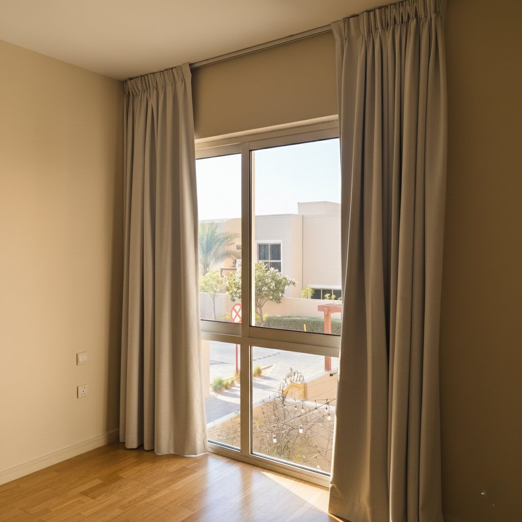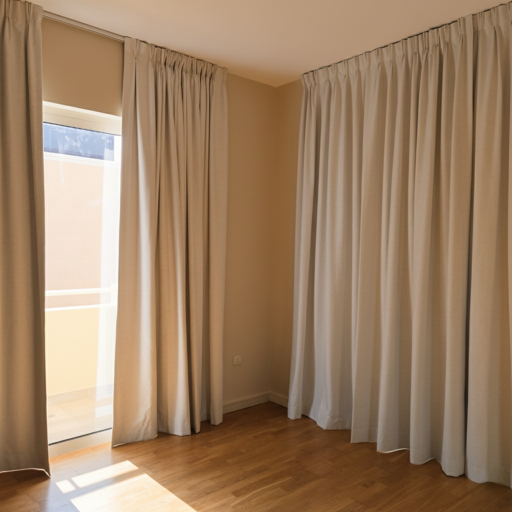 Neutral Tone Integration: The soft cream fabric was selected to complement the warm wood flooring and neutral wall tones, creating a cohesive interior environment.